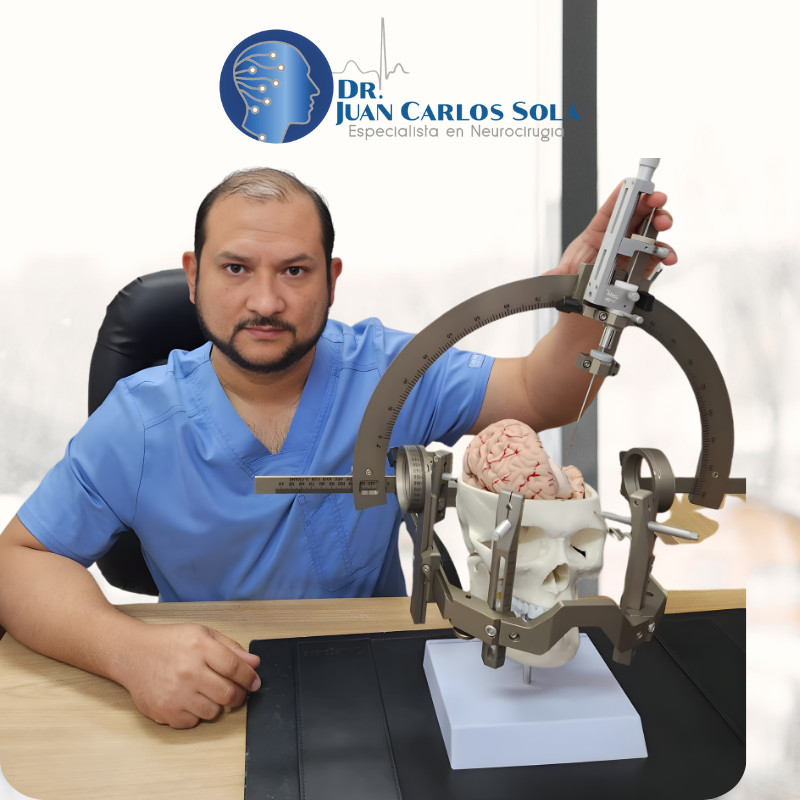 El Dr. Juan Carlos Solá Mora es médico especialista en Neurocirugía, con una destacada trayectoria clínica, académica y quirúrgica en el manejo integral de enfermedades del sistema nervioso central y periférico.